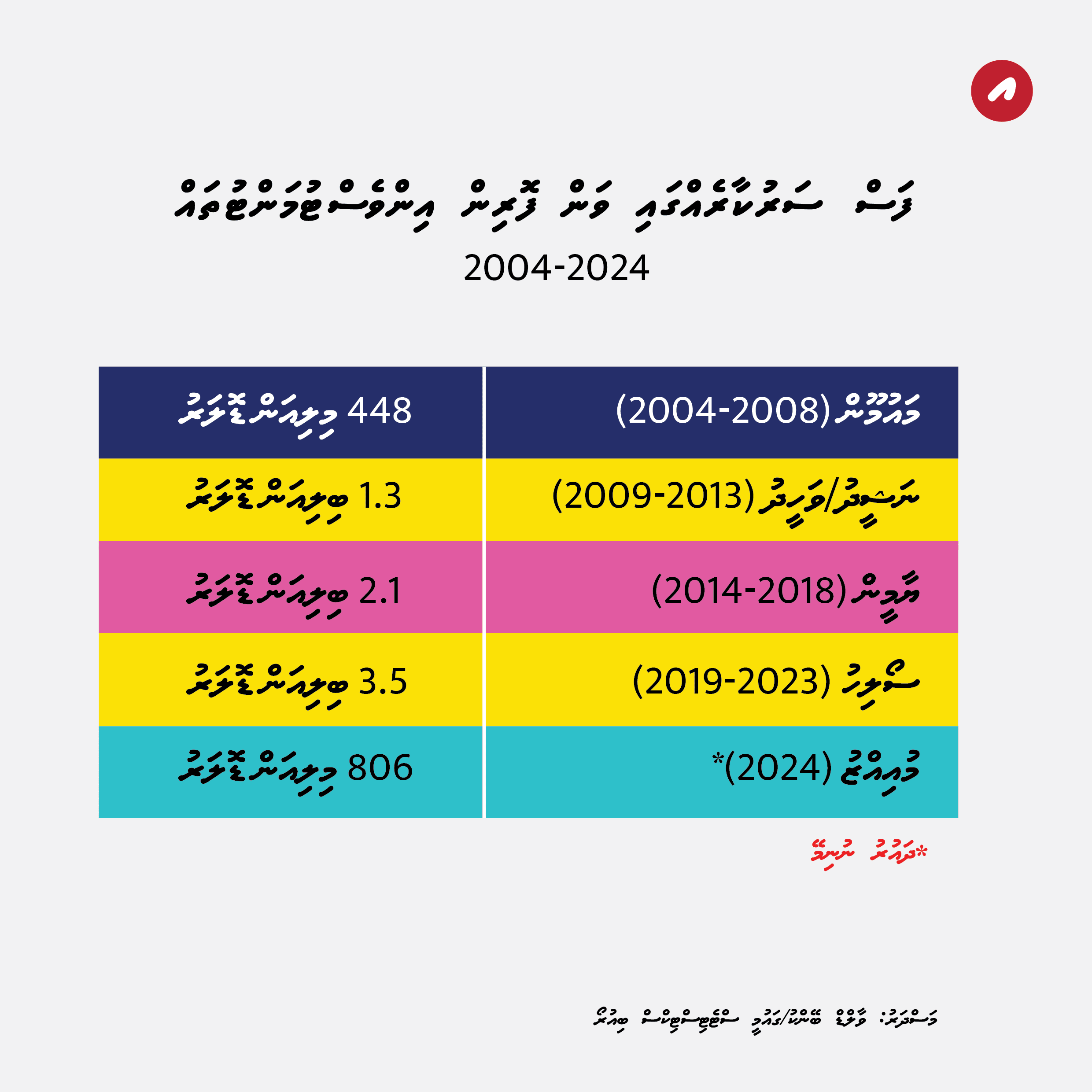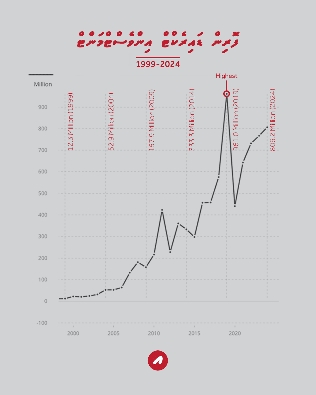 މި ގޮތުން ވޭތުވި 25 އަހަރުގެ ތެރޭގައި ރާއްޖެއަށް ވަން ފޮރިން ޑައިރެކްޓް އިންވެސްޓްމަންޓުތަކުގެ އަދަދު ބަލައި، އެކި ދައުރުތަކުގައި ވެއްދި އިންވެސްޓުމަންޓުތަކުގެ އަގު އަދަދު އިން ހިސާބުކުރީމެވެ. މި ތަފާސްހިސާބުތަކުން ދައްކާ ގޮތުގައި މިދިޔަ އަހަރު ރާއްޖެއަށް ވަން ފޮރިން ޑައިރެކްޓް އިންވެސްޓުމަންޓުތަކުގެ ޖުމްލައަކީ 806 މިލިއަން ޑޮލަރެވެ. މިއީ ރެކޯޑުތައް ބެލި މުއްދަތުގައި ކޮންމެ އަހަރެއްގައި ވަން އެވަރެޖަށް ވުރެ މާ ބޮޑަށް ވެސް އިތުރު އަދަދެކެވެ.