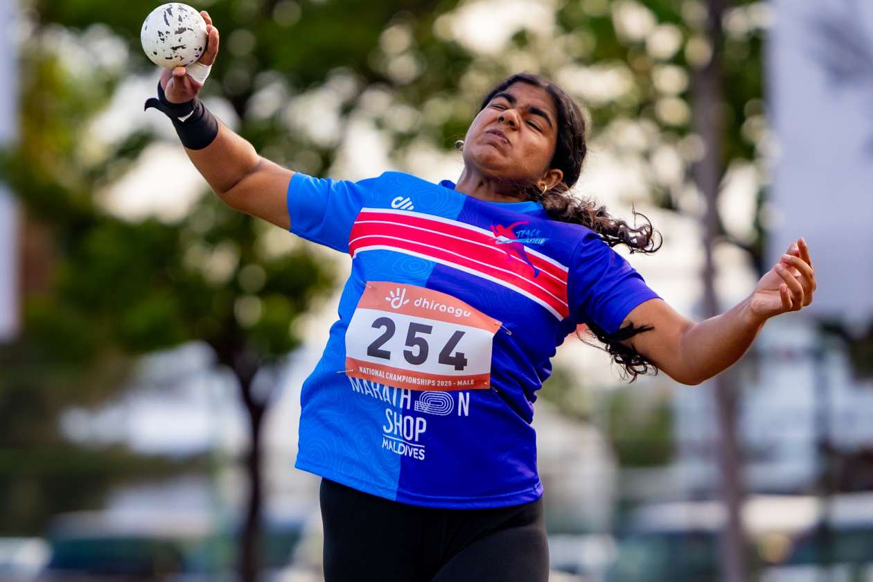 ޝޮޓް ޕުޓް އިވެންޓުން މި ފަހަރުގެ ގައުމީ މުބާރާތުގައި ގައުމީ ރެކޯޑް ހެދި ޓްރެކް އެންޑް ފީލްޑް އެސޯސިއޭޝަންގެ އެތުލީޓު، އައިޝަތު ޝާޔާ ޝަފީއު.--- ފޮޓޯ: އިމޭޖަސް.އެމްވީ