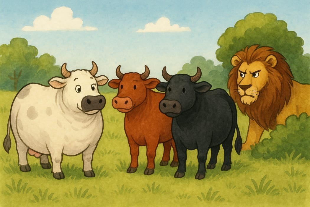 ސިންގާއަށް ވިސްނުނީ މި ގެރިތަކުގެ އެކުވެރިކަން މިހެން އޮތްހައި ދުވަހަކު އެސޮރުގެ ބޭނުން ފުދެން ނެތްކަމެވެ. އެކަމާ ފިކުރުކޮށް އެސޮރު ނެރުނު މޮޅު ބުއްދިއަކީ ތިން ގެރީގެ އެކުވެރިކަން ނިމުމަކަށް ގެނައުމާއި އަމިއްލަ އެދުން ހިތަށް ވެއްދުމެވެ. ސިންގާ ހިޔަޅު މެދުވެރިކޮށް ކަޅު ގެރިއާ ވާހަކަ ދެއްކި އެވެ. ކަލޭގެ ހުރިހައި ވަގުތެއް ވަރުބަލިކަމުގައި ތިޔަ ދުއްވާލަނީ އަނެއް ދެ ގެރީގެ ހިމާޔަތުގަ އެވެ. ކަލެއަކީ ސިންގާގެ ކިބައިން ސަލާމަތްވުމުގެ ހުނަރާއި ބާރު ހުރި ޖަނަވާރެކެވެ. އަމުދުން ސިންގާއަށް ތިޔަތަނުން އެއް ގެރި ކައިލެވިއްޖެނަމަ ދެން އިތުރަކަށް ކަލޭމެންނަކާ ދިމާކޮށްލައިގެން ނޫޅޭނެ އެވެ. ކަލޭމެންގެ ހުރިހައި ހަކަތައެއް ތިޔަ ހޭދަވަނީ ސިންގާގެ ކިބައިން ސަލާމަތްވުމަކަށް ނޫންހެއްޔެވެ؟ ތިޔައިގެ ތެރެއިން އެއް ގެރި ސިންގާއަށް ކާލަން ލިބިއްޖެނަމަ ކަލޭމެންގެ ތިޔަ ތަކުލީފު ނިމުމަކަށް އަންނާނެ ނޫންހެއްޔެވެ؟