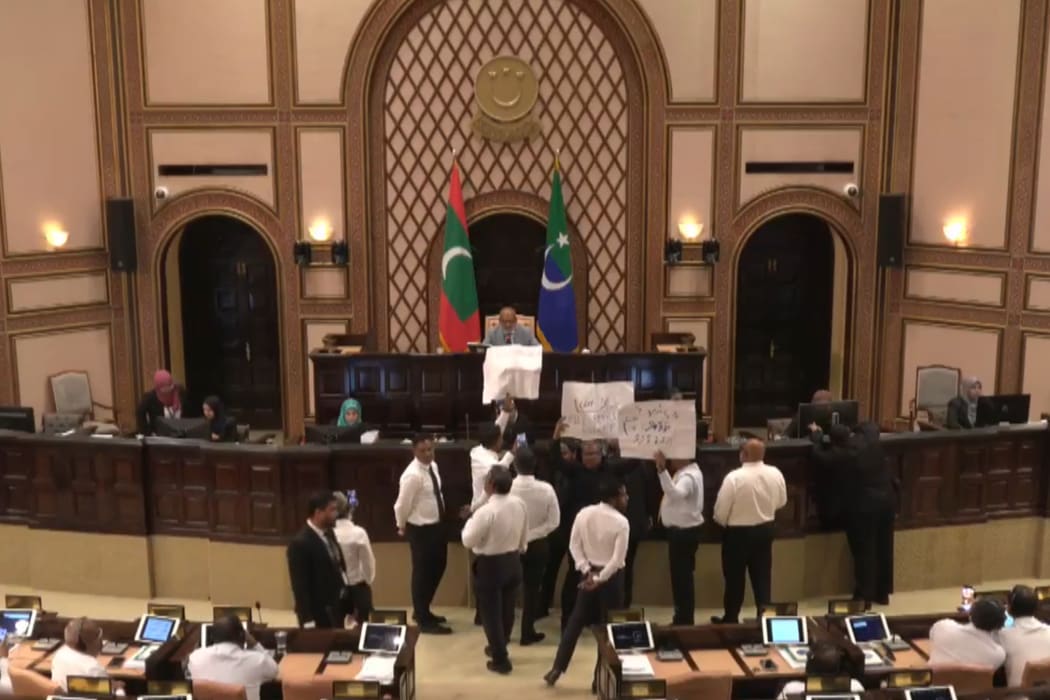 އިދިކޮޅު ބައެއް މެންބަރުން ނަން އިއްވައި ތަޅުމުން ބޭރުކުރި އެވެ.