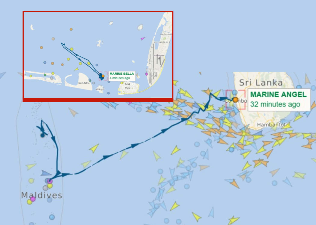 ކަނޑު އުޅަނދު ޓްރެކްކުރާ ވެސެލްފައިންޑާ އަދި މެރިން ޓްރެފިކް ފަދަ ސައިޓުތަކުން ދައްކާ ގޮތުގައި މީގެ ތެރެއިން މެރިން އޭންޖަލް މިވަގުތު އޮތީ ލަންކާގެ ވެރިރަށް ކޮލަމްބޯގައި ބަނދަރުކޮށްފަ އެވެ. މެރިން ބެލާ އޮތީ މާލެ ސަރަހައްދުގަ އެވެ.