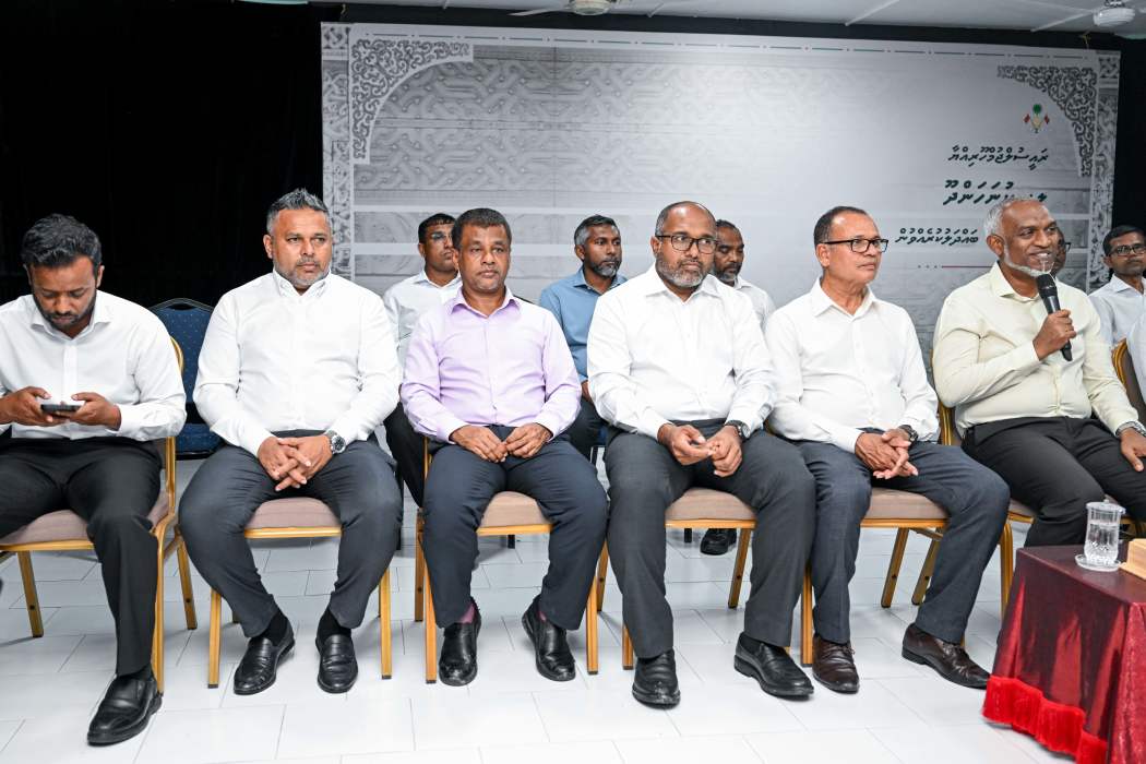 ލ. އަތޮޅަށް ކުރައްވަމުން ގެންދަވާ ދަތުރުގައި އެ އަތޮޅު ކުނަހަންދޫ ރައްޔިތުންނާއެކު ބޭއްވި ބައްދަލުވުމުގައި ރައީސް މުހައްމަދު މުއިއްޒު ވާހަކަ ދައްކަވަނީ. -- ފޮޓޯ: ރައީސް އޮފީސް