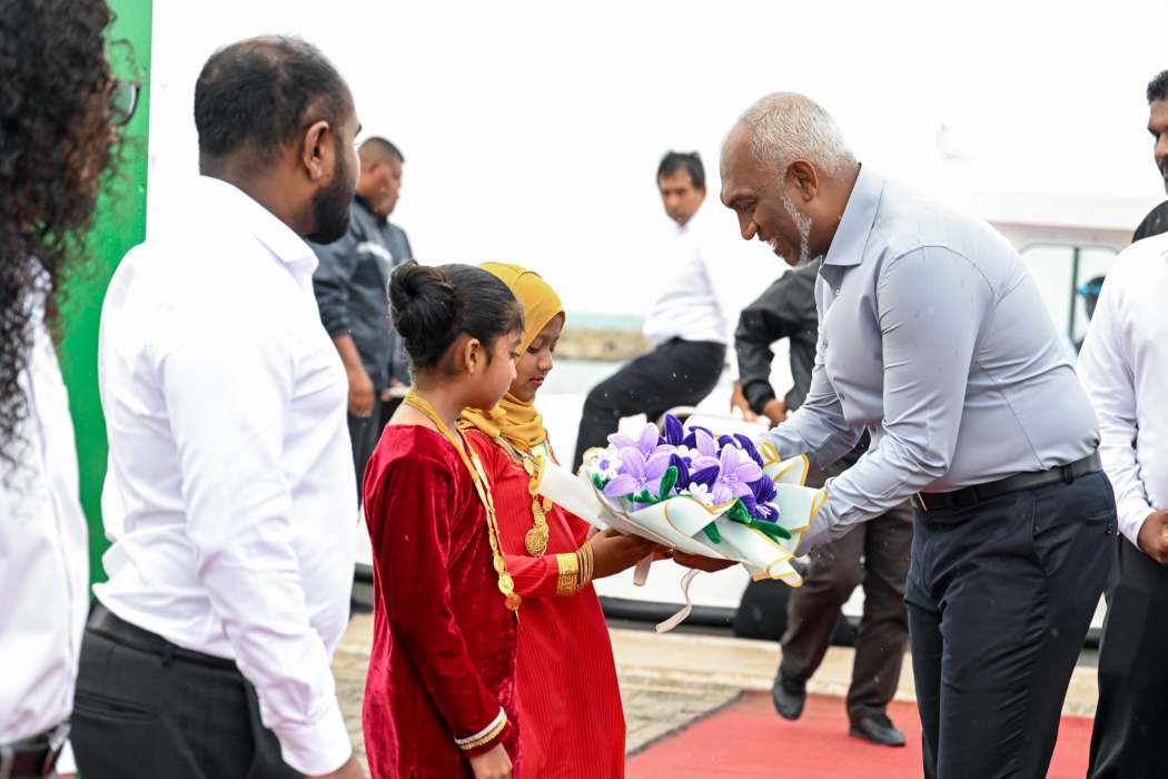 މުއިއްޒު ލ. އަތޮޅަށް ކުރެއްވި ދަތުރެއްގެ ތެރެއިން: ޅ. އަތޮޅާއި ކ. އަތޮޅަށް ކުރައްވާ ދެ ދުވަހުގެ ދަތުރެއްގައި މުއިއްޒު ވަނީ ފުރާވަޑައިގެންފައި -- ފޮޓޯ: ރައީސް އޮފީސް