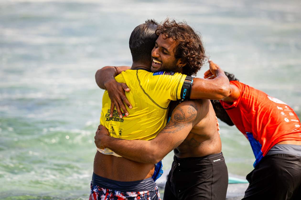 ފައިނަލް ހީޓަށް ފަހު އާމިން (ކ) ކުޑަ އައްޔަ ގައިގައި ބައްދާލައިގެން.--- ފޮޓޯ: އަދަދު ސްޕޯޓްސް / އިމޭޖަސް.އެމްވީ