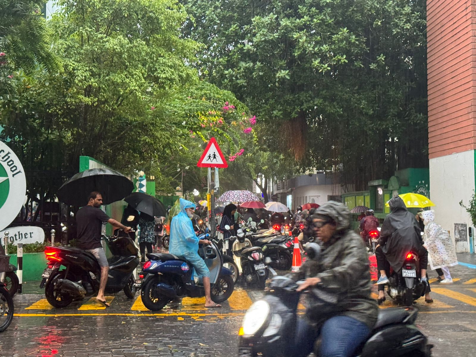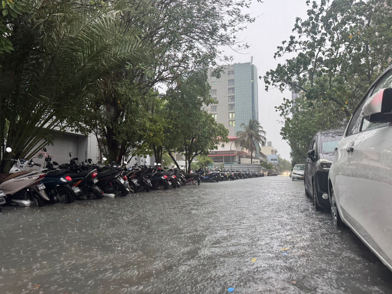 Some areas, especially in Maafannu district, were flooded, causing difficulties for pedestrians and vehicles.