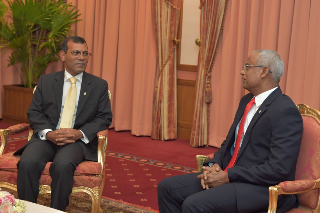 ކުރީގެ ރައީސް ނަޝީދު އާއި ކުރީގެ ރައީސް ސޯލިހު -- ފޮޓޯ: ރައީސް އޮފީސް