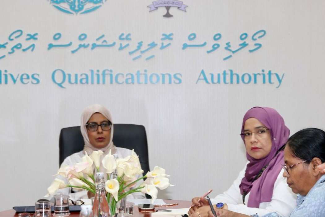 މޯލްޑިވްސް ކޮލިފިކޭޝަން އޮތޯރިޓީގެ ސިީއީއޯ ފިޒާނާ (ވ) އެ އޮތޯރިޓީގެ ބައްދަލުވުމެއްގައި: ރާއްޖޭގެ ޑޮކްޓޯރަލް ޕްރޮގްރާމުތަކަށް ހާއްސަ އުސޫލެއް މިހާތަނަށް އެމްކިޔުއޭއިން އެކުލަވާލާފައި ނުވޭ --- ފޮޓޯ: އެމްކިޔުއޭ