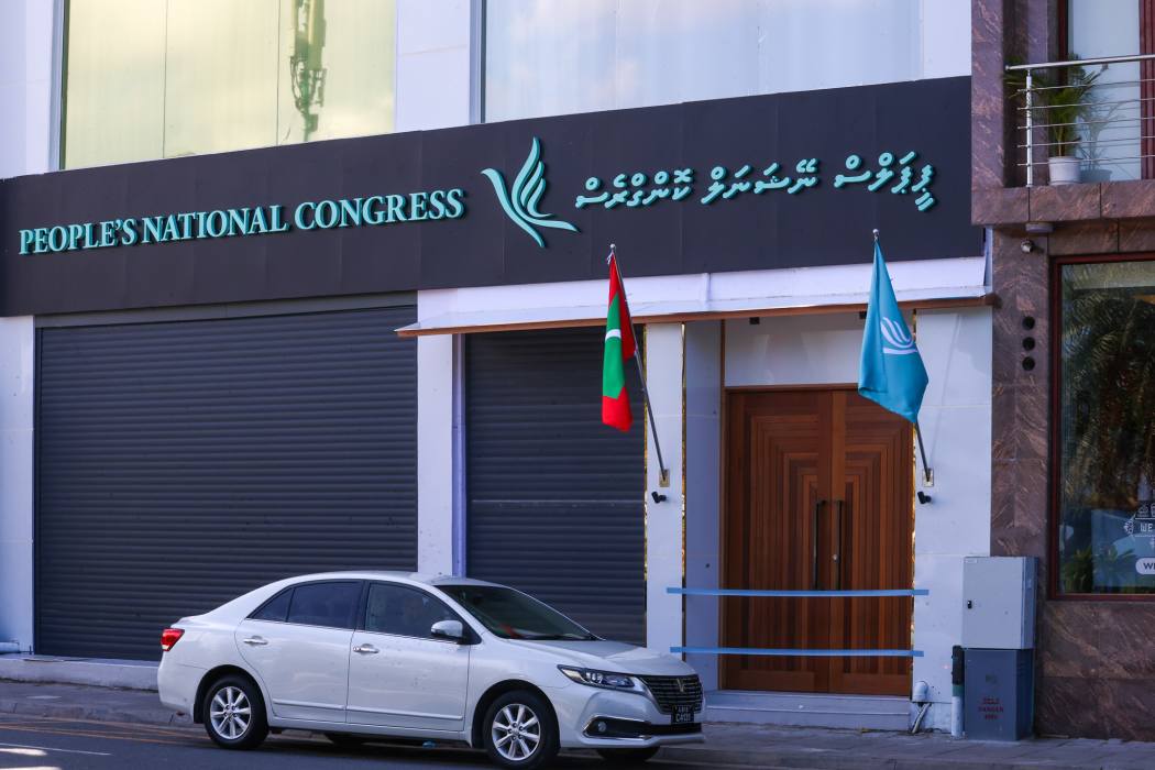 ވެރިކަން ކުރާ ޕީއެންސީން މާލޭގައި އެންމެ ފަހުން ހުޅުވި ހަރުގެ: އެ ޕާޓިން ބުނާ ގޮތުގައި ކުރިއަށް އޮތް ކައުންސިލް އިންތިހާބުގައި މައި ކެމްޕެއިން ޖަގަހައަކީ މިއީ --- ފޮޓޯ: އިބްރާހިމް ޝާފިއު/އަދަދު