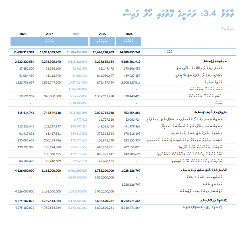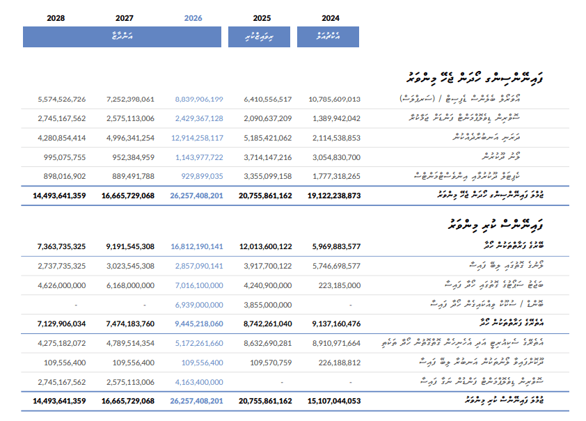 ސަރުކާރުން މި އަހަރު ފައިނޭންސިން ހޯދާ ގޮތުގެ ތަފުސީލު ހިމެނޭ ތާވަލު --- މަސްދަރު: ބަޖެޓު ފޮތް 2026