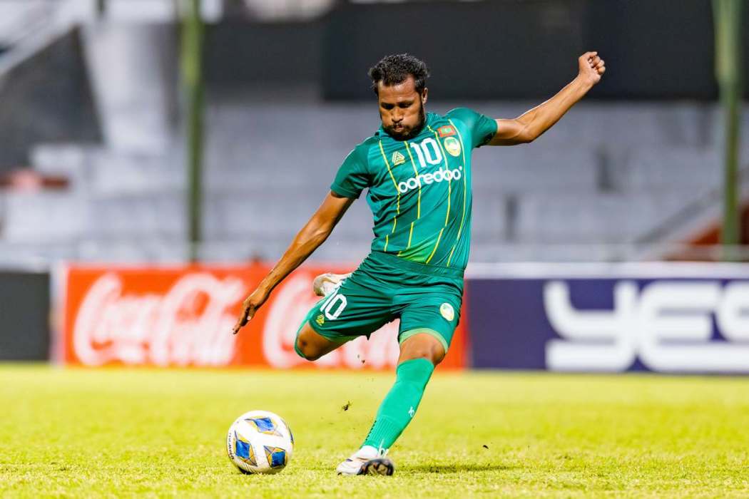 ލީގުގައި މިރޭ މާޒިޔާ ކުޅުނު މެޗުގެ ތެރެއިން ހަމްޕު ބޯޅަ ފޮނުވާލަނީ.--- ފޮޓޯ: އަދަދު ސްޕޯޓްސް / އިމޭޖަސް،އެމްވީ