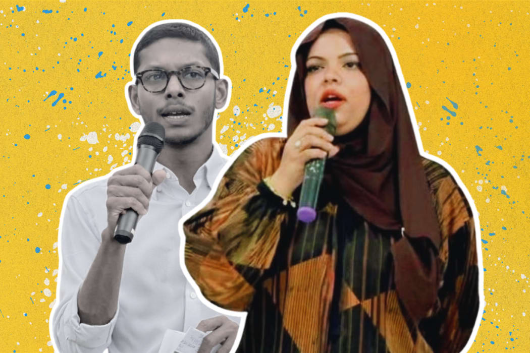 ލޯކަލް ކައުންސިލް އިންތިހާބުގެ އެމްޑީޕީ ޕްރައިމަރީގައި މައްޗަންގޯޅި އުތުރަށް ވާދަކުރި ދެ ކެންޑިޑޭޓުން، ހަދީޖާ މުހައްމަދު (ކ) އާއި ސައިފް ފާތިހު (ވ) -- ފޮޓޯ: އަދަދު