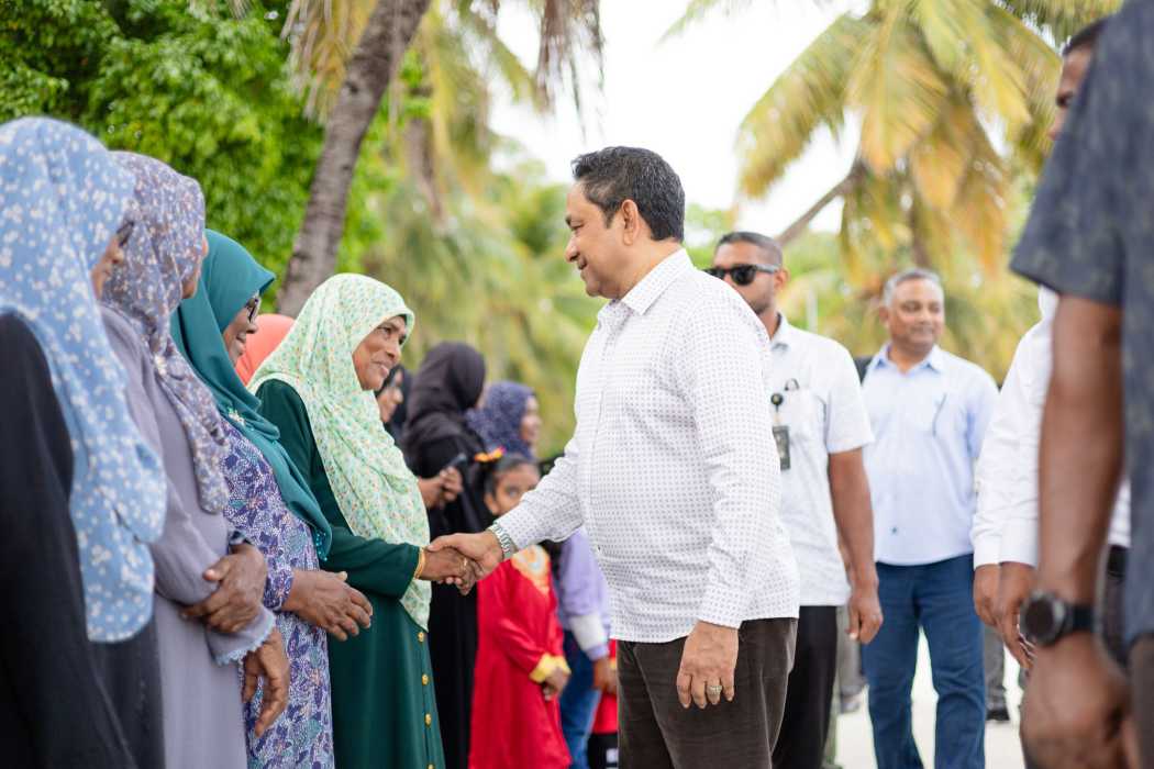 ކުރީގެ ރައީސް އަބްދުﷲ ޔާމީން ހއ. ދިއްދޫއަށް ކުރެއްވި ދަތުރެއްގެ ތެރެއިން: އެންމެ މަގުބޫލު ސިޔާސީ ލީޑަރަކީ ޔާމީން ކަމަށް ޕޯލްއަކުން ވަނީ ދައްކާފައި -- ފޮޓޯ: ހއ. ދިއްދޫ ކައުންސިލް