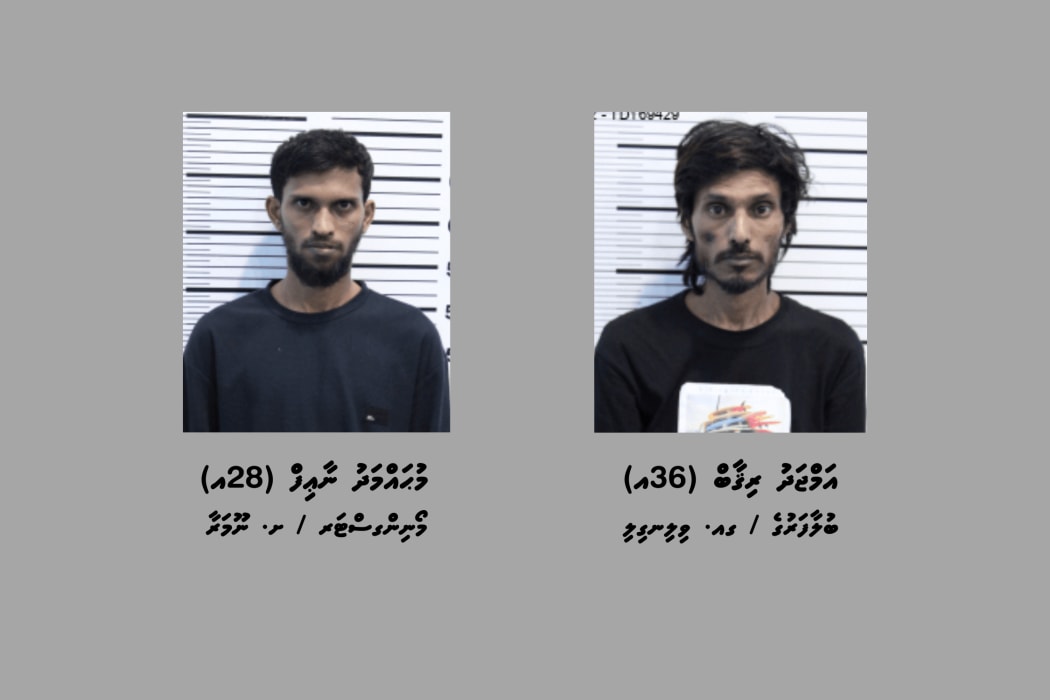 ގިނަ އަދަދެއްގެ މަސްތުވާތަކެއްޗާއި ފައިސާއާއެކު ހައްޔަރުކުރި ދެ މީހުން -- ފޮޓޯ: ފުލުހުން