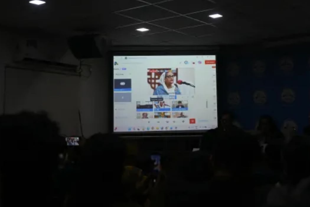 ބަނގްލަދޭޝްގެ ކުރީގެ ބޮޑުވަޒީރު ޝައިޚް ހަސީނާ، ޖެނުއަރީ 23، 2026 ގައި ނިއުދިއްލީގައި ވަޗުއަލްކޮށް ތަގުރީރު ކުރައްވަނީ