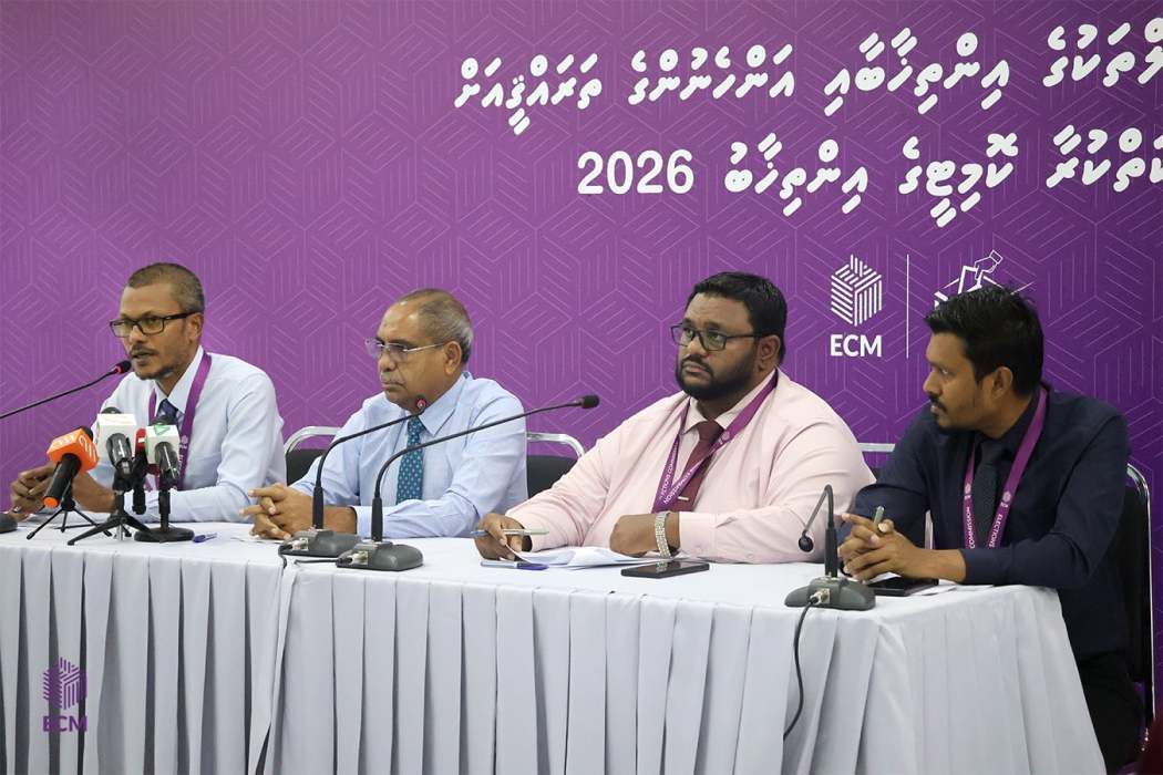 އިލެކްޝަންސް ކޮމިޝަނުން ބޭއްވި ނޫސްވެރިންގެ ބައްދަލުވުމެއްގެ ތެރެއިން: އެ ކޮމިޝަނުން ބުނީ މިހާތަނަށް ލޯކަލް ކައުންސިލް އިންތިހާބުގައި ވާދަކުރުމަށް ހުށަހެޅި 750 ކެންޑިޑަންސީ ގަބޫލުކޮށްފައިވާ ކަމަށް -- ފޮޓޯ: އިލެކްޝަން