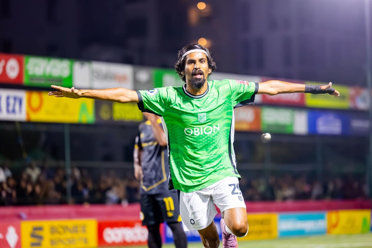 ނައިވާދޫ ޓީމަށް ރޭގެ މެޗުގައި ދެ ގޯލު ޖަހައިދިން ވިޝާންޓެ ލަނޑު ޖެހުމަށް ފަހު އުފާފާޅުކުރަނީ.--- ފޮޓޯ: އިމޭޖަސް،އެމްވީ