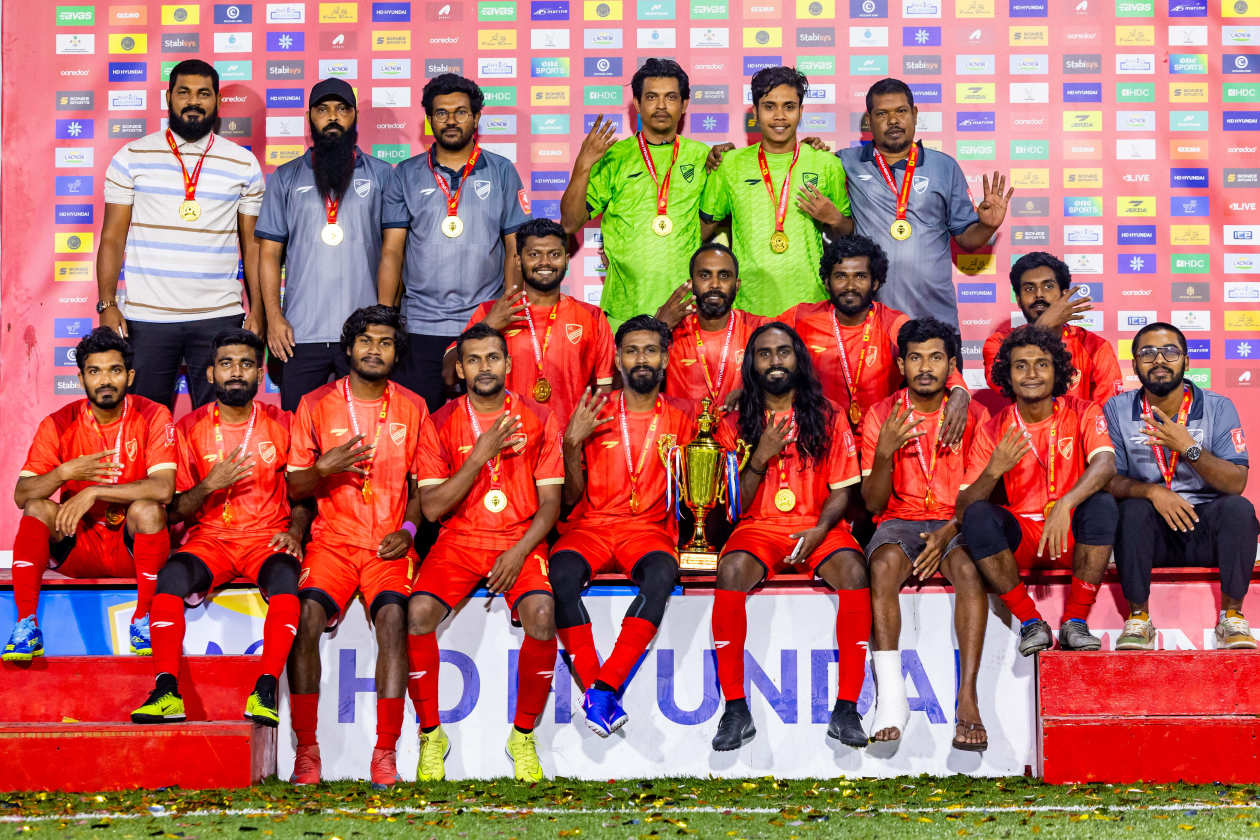 ޒޯން ފަހެއްގެ ޗެމްޕިއަންކަން ހޯދި ކުޑަހުވަދޫ ކުޅުންތެރިން އުފާފާޅުކުރަނީ.---- ފޮޓޯ: އަދަދު ސްޕޯޓްސް / އިމޭޖަސް.އެމްވީ