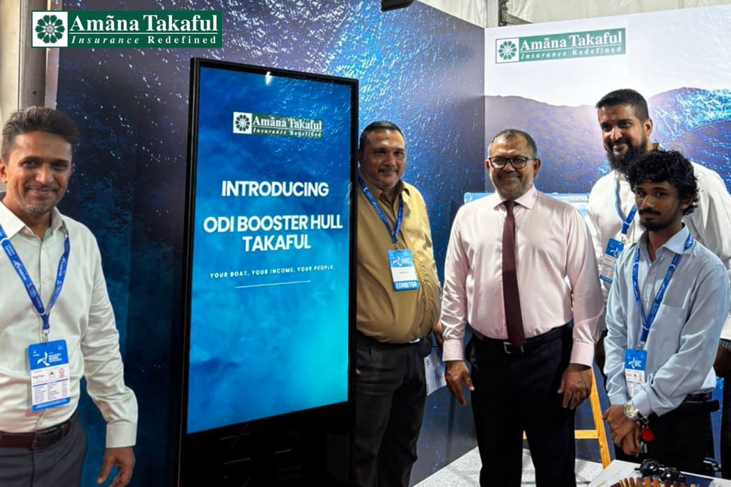 ފިނޭންސް މިނިސްޓަރު މޫސާ ޒަމީރު އާއި އަމާނާ ތަކަފުލްގެ އިސްވެރިން މިއަދު މެރިން އެކްސްޕޯގައި ހުރި އެ ކުންފުނީގެ ސްޓޯލްގައި.