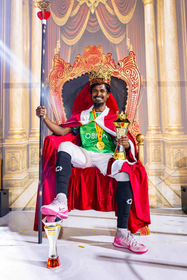 ގޯލްޑަން ފުޓްސަލް ޗެލެންޖު 2026 ގެ ކިންގް އޮފް ފުޓްސަލްގެ ތަހުތުގައި ޔާންޓެ އިށީނދެލައިގެން.---- ފޮޓޯ: އަދަދު ސްޕޯޓްސް / އިމޭޖަސް.އެމްވީ