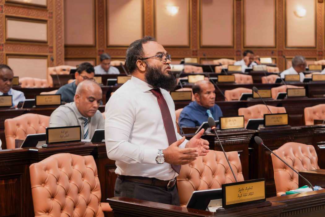 ހުޅުމާލެ އުތުރު ދާއިރާގެ މެންބަރު ހުސައިން ޝަރީފް: ސްކޫލް ނިންމާފައި މިލިޓަރީ ޓްރެއިނިން ނަހަދާނަމަ ސަރުކާރުން ވަޒީފާ ނުދޭން އޭނާ ވިދާޅުވި -- ފޮޓޯ: މަޖިލިސް