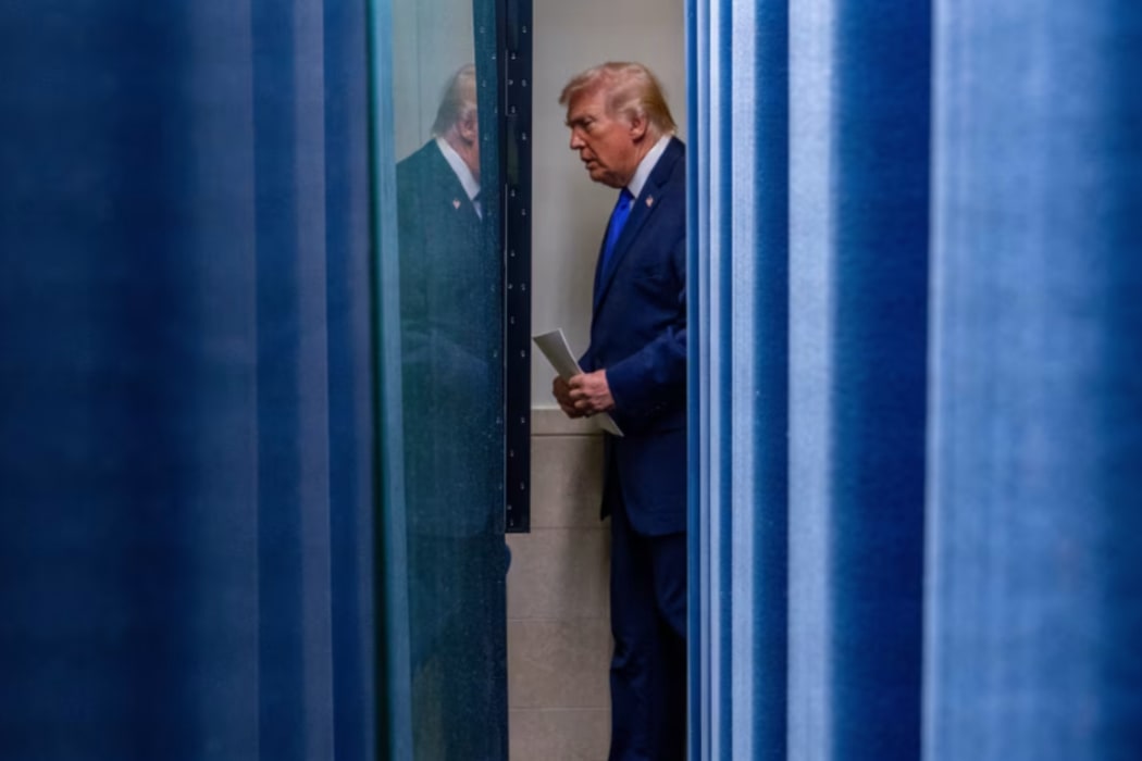 ރައީސް ޑޮނަލްޑް ޓްރަމްޕް ހުކުރު ދުވަހު ވައިޓް ހައުސްގެ ޕްރެސް ބްރީފިން ރޫމުގައި -- ފޮޓޯ: އޭޕީ