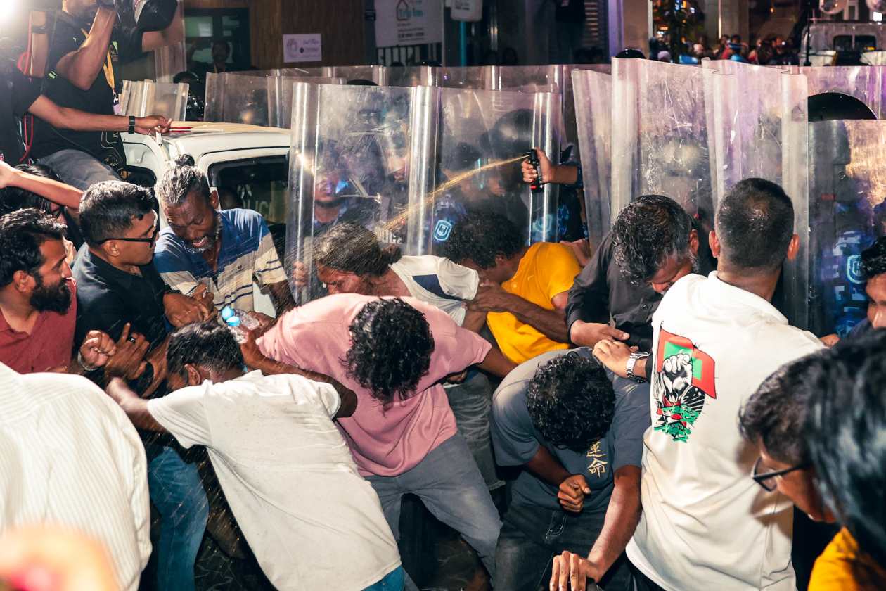އޮކްޓޯބަރު 3 ގައި ބޭއްވި މުޒާހަރާ ރޫޅާލުމަށް ފުލުހުން ޕެޕާ ސްޕްރޭ ޖަހަނީ. -- ފޮޓޯ: އަދަދު