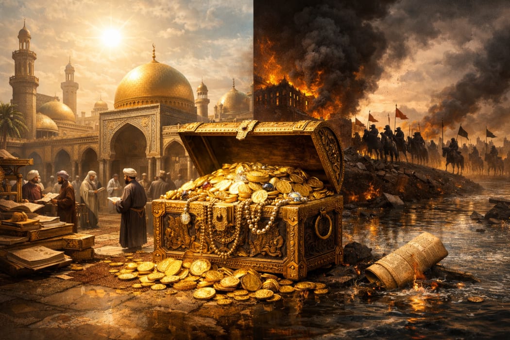 އައްބާސީ ދަރިކޮޅުގެ ވެރިކަން ނިމެން ގާތްވިއިރު މުސްލިމުންގެ ބައިތުލްމާލު ވެފައިވަނީ، އެއީ އައްބާސީ ދަރިކޮޅުގައި އޭރު ތިބި ބަޔެއްގެ ނުވަތަ ޚިލާފަތުގެ ބާރުވެރިކަން ފޯރާ ހިސާބުގައި ތިބި މީސްކޮޅުގެ އަމިއްލަ މުދާގަނޑެއް ފަދަ އެއްޗަކަށެވެ. އެޔަކުން މުސްލިމް ރައްޔިތުންނަށް ކުރަންޖެހޭ ވަރާ ގާތަށް ވެސް ލާބަޔެއް މަންފާއެއް ކުރަމަކުން ނުދެއެވެ.
