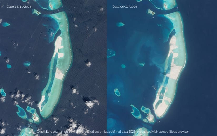 ވޭތުވި ފަސް މަސް ދުވަހުގެ ތެރޭގައި ރަސްމާލެއިން ހިއްކާފައިވާ ސަރަހައްދު: ކަނާތުން ފެންނަ ފޮޓޮއަކީ ފަސް މަސް ކުރިން އެހާތަނަށް ހިއްކާފައި ހުރި ސަރަހައްދު --- ފޮޓޯ: ކޮޕާނިކަސް