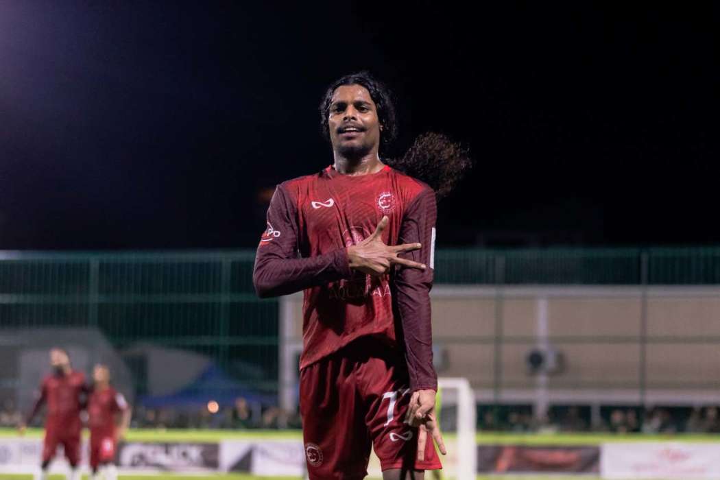ރޭގެ މެޗުގައި ޕެންތާސް އިން ލަނޑު ޖެހުމަށް ފަހު އުފާފާޅުކުރަނީ.--- ފޮޓޯ: ލަ ސޯނިޔާ ޔުނިޓީ ފުޓްސަލް ކަޕް