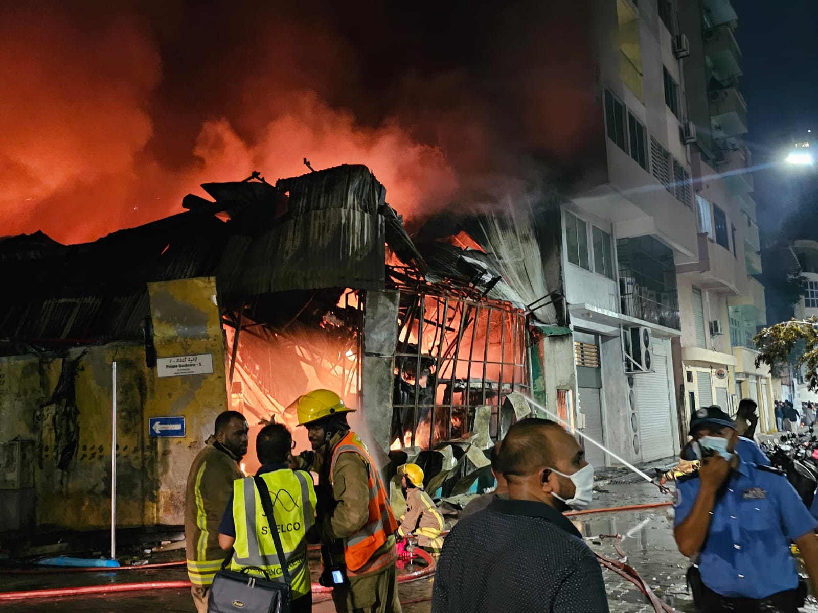 އިންތިހާބާ ބެހޭ މަރުކަޒާ ޖެހިގެން ހުރި ގުދަނުގައި އަލިފާން ރޯވެ އެތައް ވަނީ ހުލިވެފައި. --- ފޮޓޯ: ޑިޒާސްޓަ މެނޭޖުމެންޓު ސެންޓަރު