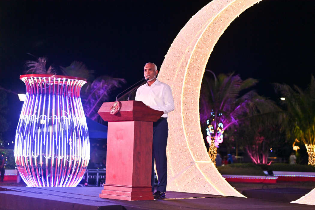 ރައީސް މުއިއްޒު ވެރިކަމަށް ވަޑައިގެން ކޮންމެ އީދެއްގައި ބޮޑު ހަރަދުކޮށްގެން ރަށްތައް ކުލަބޮކިން ދިއްލަން ވަނީ ފަށާފައި. -- ފޮޓޯ: ރައީސް އޮފީސް