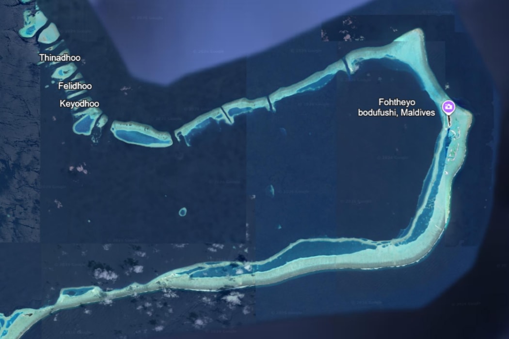 ވާވު އަތޮޅުގެ އިރުމަތީ ފަރާތް ފެންނަ ސެޓެލައިޓް ފޮޓޮއެއް: އެއާޕޯޓު އަޅަނީ ފޮޓޯގެ ތިރިން ފެންނަ ދިއްގަރު ފަޅުގައި --- ފޮޓޯ: ގޫގުލް އާތު