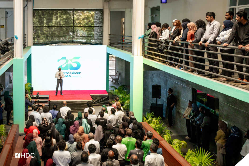 އެޗްޑީސީގެ 25 ވަނަ އަހަރީ ދުވަހުގެ ހަރަކާތްތައްް އިފުތިތާހުކުރުމަށް މި އަހަރުގެ ފެބްރުއަރީ މަހު ބޭއްވި ރަސްމިއްޔާތުގައި އެ ކުންފުނީގެ މެނޭޖިން ޑިރެކްޓަރު ޒުހައިރު ވާހަކަ ދައްކަވަނީ. -- ފޮޓޯ: އެޗްޑީސީ
