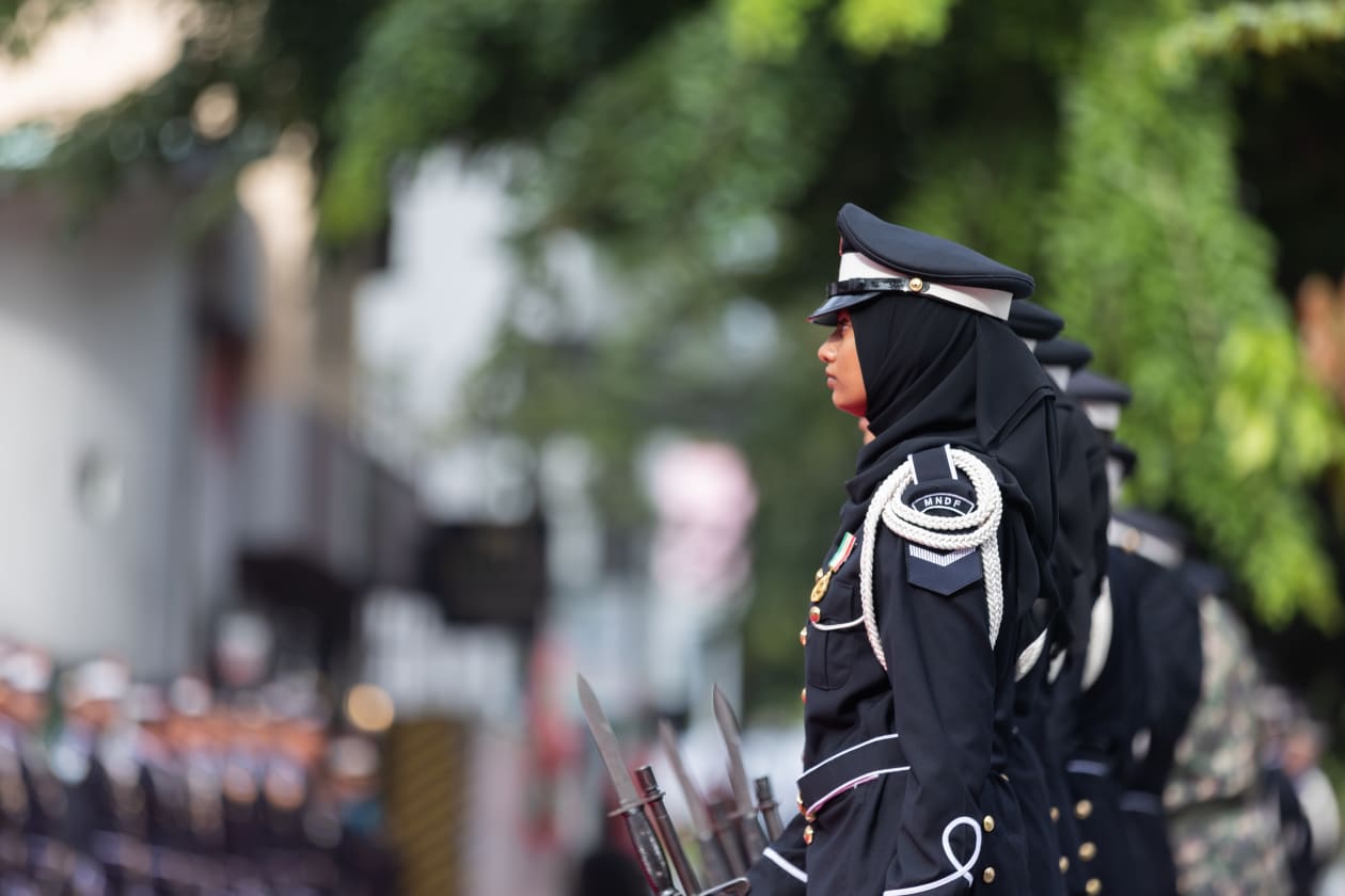 ފެބްރުއަރީ 6، 2022 - ރައްޔިތުންގެ މަޖިލިސް މިއަހަރު ހުޅުވުމަށް ބޭއްވި ރަސްމިއްޔާތުގެ ކުރިން ސިފައިންގެ ގާޑު އޮފް އޮނާ އަރުވާ ޓީމުގެ މެމްބަރުން. މި ޓީމުގައި މިހާރު އަންހެން މެމްބަރުން ވެސް ހިމެނޭ --- ފޮޓޯ: މުހައްމަދު ޝާބިން/އަދަދު