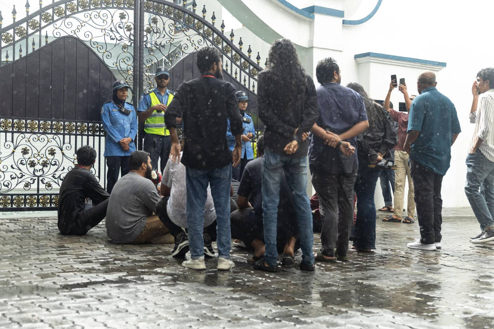 ރައީސް އޮފީސް ކުރިމަތީގައި ނޫސްވެރިން ކުރި އިހުތިޖާޖުގެ ތެރެއިން ހަތަރު ނޫސްވެރިއަކު ވަނީ ހައްޔަރު ވެސް ކޮށްފަ އެވެ. - ފޮޓޯ: އަތޫފް އާތިފް / އަދަދު