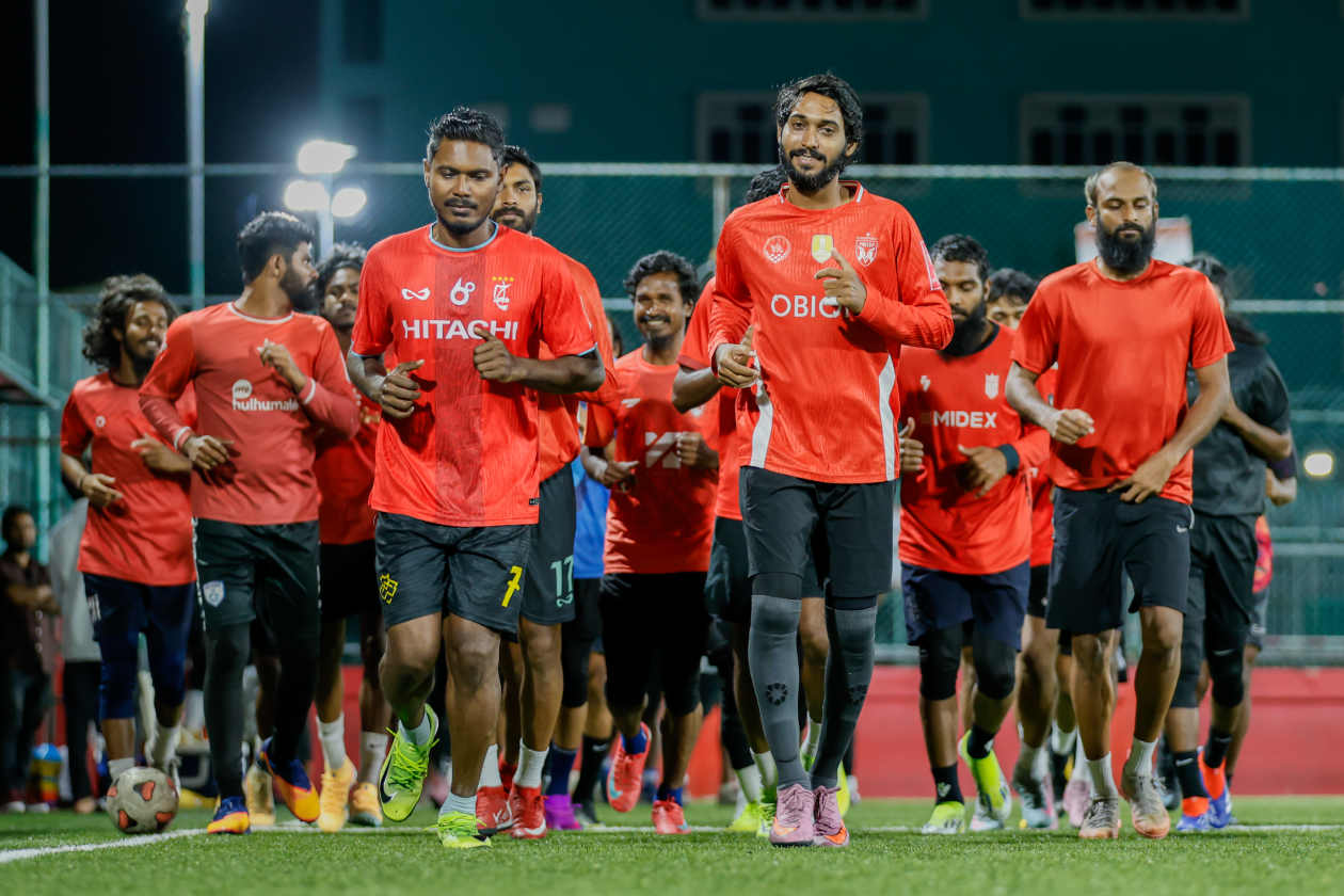 ޖެނުއަރީ މަހުގެ 13-26 އަށް ތައިލެންޑުގެ ނޮންތަމްބުރީގައި ކުރިއަށްދާ ސާފްގެ ފުރަތަމަ ފުޓްސަލް ޗެމްޕިއަންޝިޕް އަަށް ރާއްޖޭގެ ގައުމީ ފިރިހެން ފުޓްސަލް ޓީމުން ރޭ ޕްރެކްޓިސް ފަށާފައިވަނީ ބޮޑު ޕްރިލިމިނަރީ ސްކޮޑަކާ އެކު.--- ފޮޓޯ: ރާއިފް ޔޫސުފް / އަދަދު ސްޕޯޓްސް