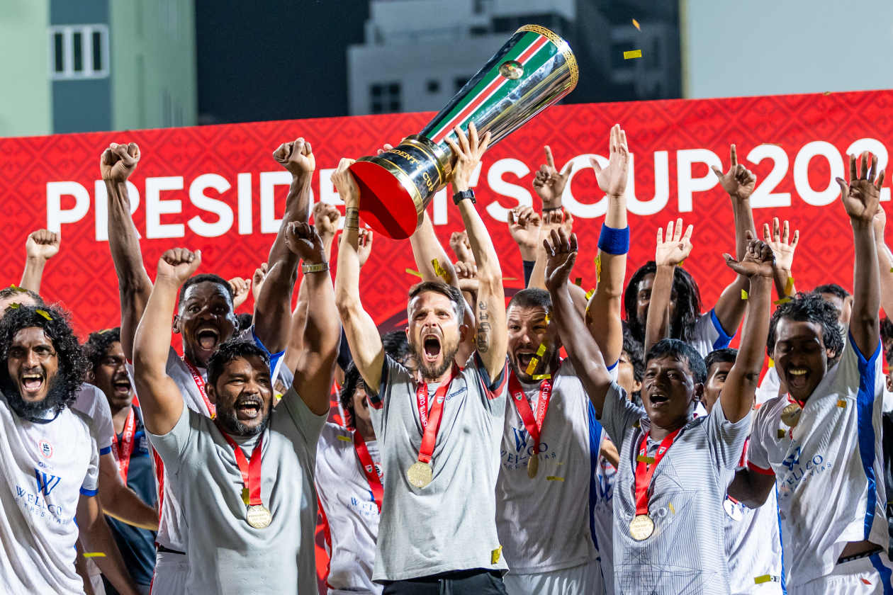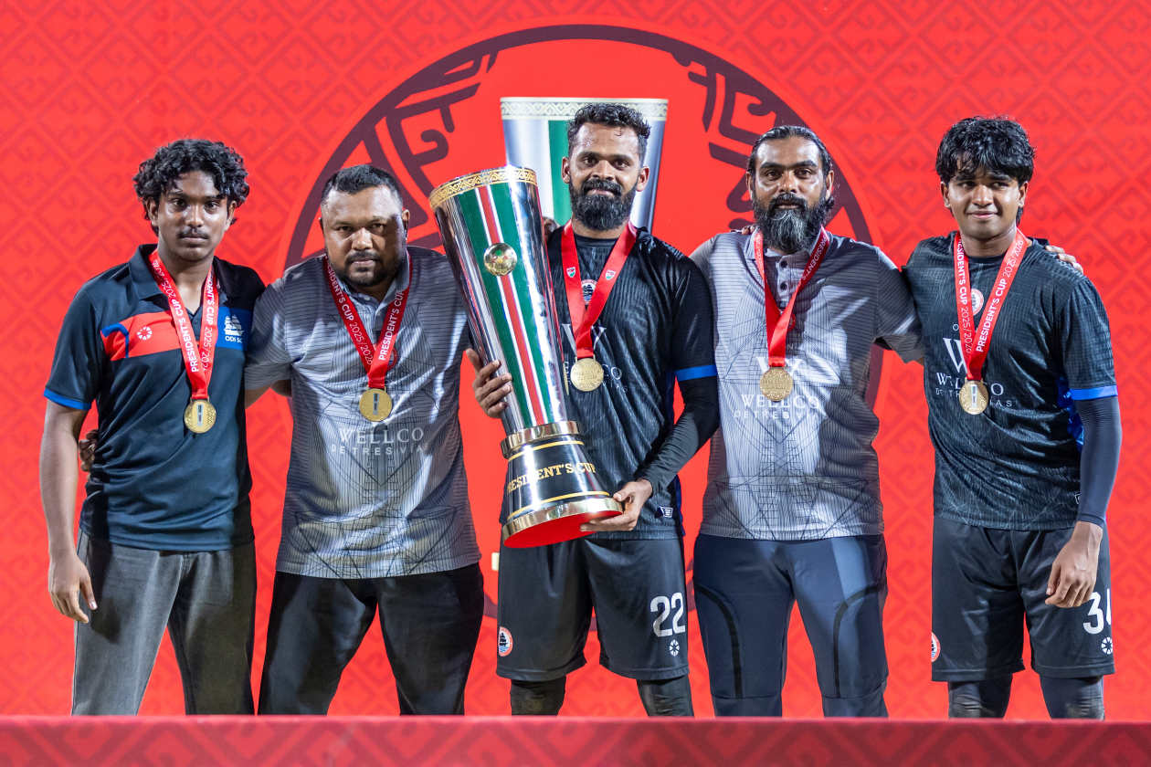 މާލެ، ދިވެހި ރާއްޖެ (ފެބްރުއަރީ 25): މާޒިޔާ ސްޕޯޓްސް އެންޑް ރެކްރިއޭޝަނާ 1-1 އިން އެއްވަރުވެ، ޕެނަލްޓީ ޖަހައިގެން 5-4 އިން ކުރިހޯދައި، އޮޑި ސްޕޯޓްސް ކްލަބުން ވަނީ ފުރަތަމަ ފަހަރަށް ޕްރެޒިޑެންޓްސް ކަޕްގެ ޗެމްޕިއަންކަން ހޯދައިފައި: އޮޑި އަކީ މި ގޮތަަށް ފުރަތަމަ ޑިވިޝަނުގައި ފުރަތަމަ ސީޒަނުގައި މި ފަދަ ކާމިޔާބީއެއް ހޯދި ފުރަތަމަ ޓީމު.--- ފޮޓޯ: އިމޭޖަސް،އެމްވީ