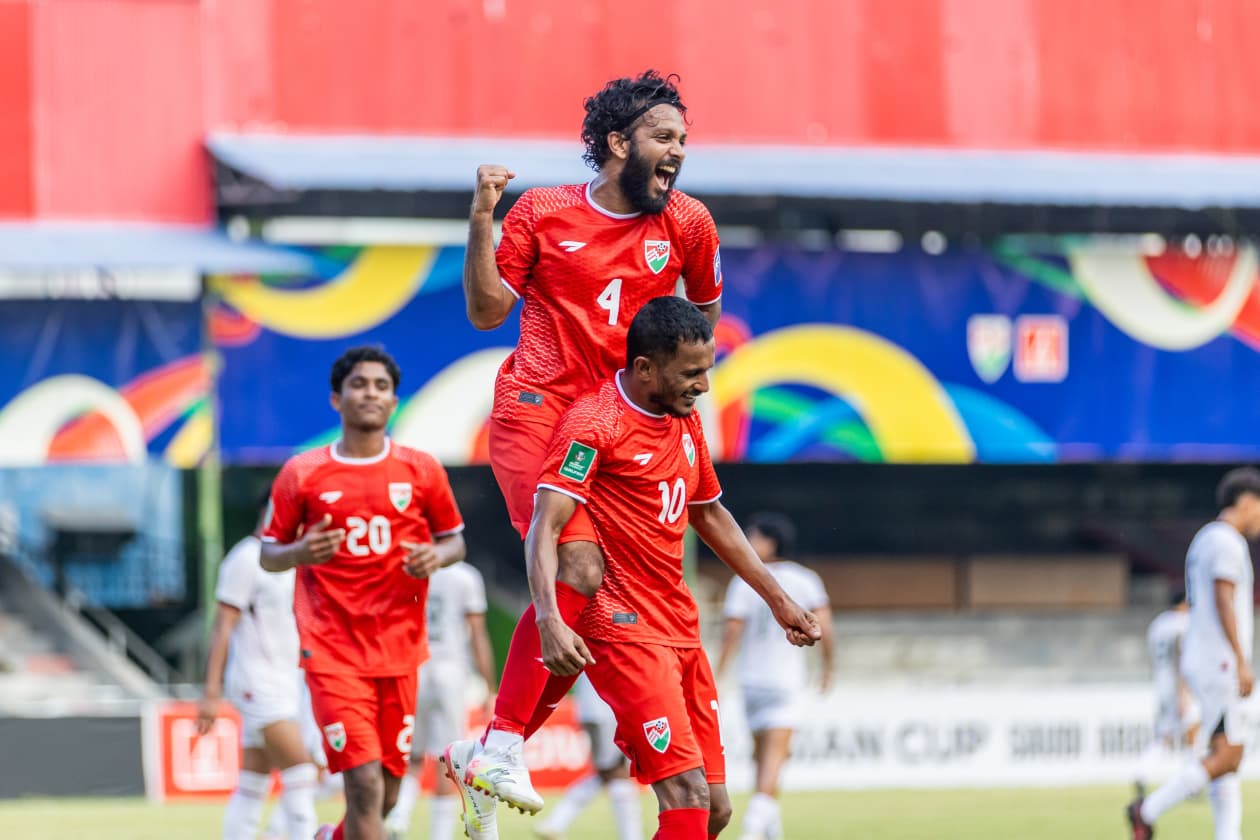 ސައުދީ އަރަބިއްޔާގައި އަންނަ އަހަރު ބާއްވާ އޭޝިއަން ކަޕްގެ ކޮލިފައިންގައި ރާއްޖޭން ކުޅުނު ފުރަތަމަ ފަސް މެޗުން ބަލިވެފައިވާއިރު، ކުޅުުނު ފަހު މެޗުން ޓިމޯ ލެސްޓޭ އަތުން މޮޅުވެފައިވަނީ މެޗުގެ ފަހު ވަގުތު ޖެހި ދެ ގޯލާ އެކު 2-1 އިން. --- ފޮޓޯ: ރާއިފް ޔޫސުފް / އަދަދު ސްޕޯޓްސް