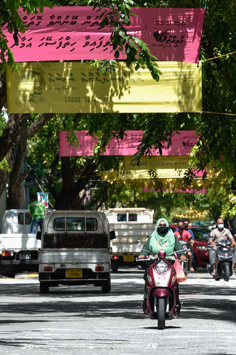 ލޯކަލް ކައުންސިލް އިންތިހާބަށް މާލޭގެ މަގުތަކުގައި ބެނާ ދަމާފައި: މި އިންތިހާބު ކާމިޔާބުކުރާނީ ޕީޕީއެމުން ކަމަށް އަދުރޭ ވިދާޅުވި. --ފޮޓޯ: ހުސެއިން ވަހީދު/އަދަދު