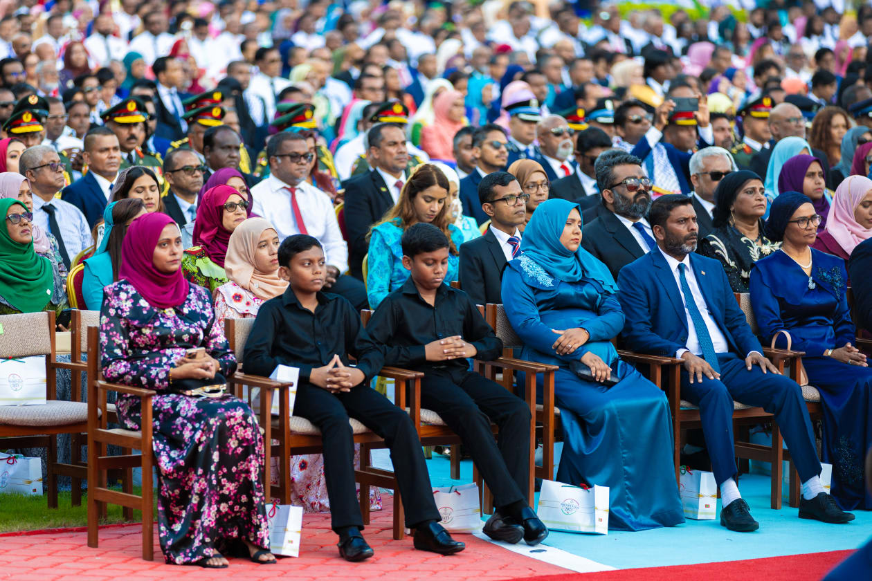 "އެ ދިދައިގައި ކުލަތައް އެތުރިފައި ހުންނަނީ، ވަކި މިންތަކަކުން ވަކި އިންތަކެއްގައި. އެއިން އެނގެނީ މިނިވަންކޮށް މުޖުތަމައެއް ނުވަތަ ގައުމެއް ބޭއްވޭނީ ހަމަތަކަކާއި އުސޫލުތަކެއް ހުރުމާއެކު، ވަކިގޮތަކަށް ތަރުތީބުވެގެން، ވަކި އިންތިޒާމެއްގެ މަތީ އެ ބަޔަކު ތިބެގެންކަން. އެހެންކަމުން، އެ ދިދަ އަޅުގަނޑުމެންނަށް ހަނދާންކޮށްދެނީ، ދިވެހި ގައުމު ހަގީގީ ދިވެހި ގައުމަށް ވާނީ، ދިވެހި މުޖުތަމައު ދިވެހީންގެ ހަގީގީ ސިފަތަކުން ގުޅި ލާމެހި އެކުވެރިވެގެންކަން،" މުއިއްޒު ވިދާޅުވި އެވެ.