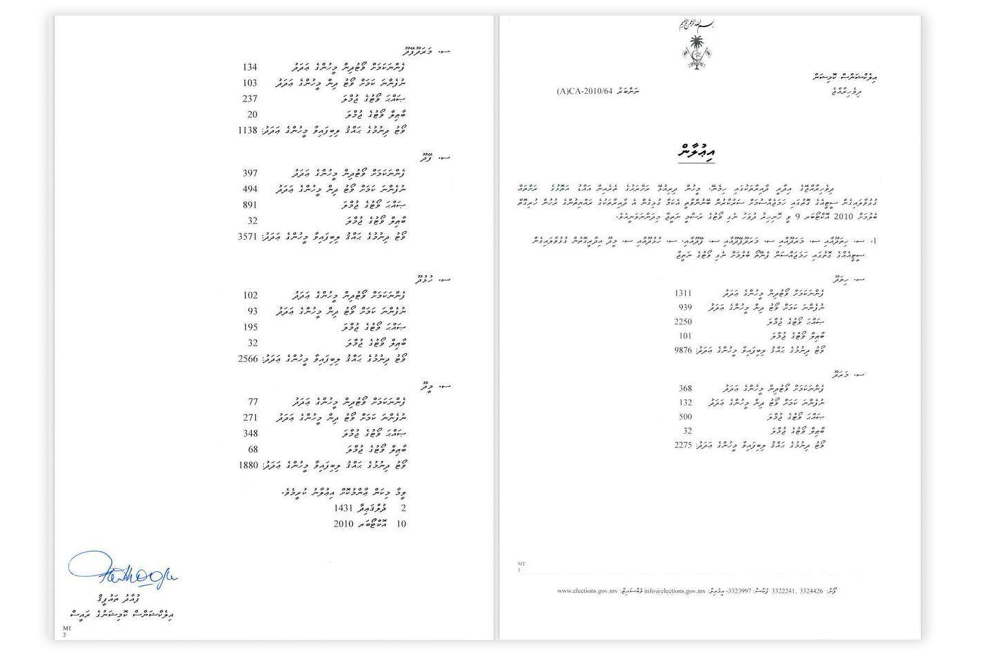 ސިޓީ ކައުންސިލް އުފެއްދުމަށް 2010 ވަނަ އަހަރު ނެގި ވޯޓުގެ ނަތީޖާ