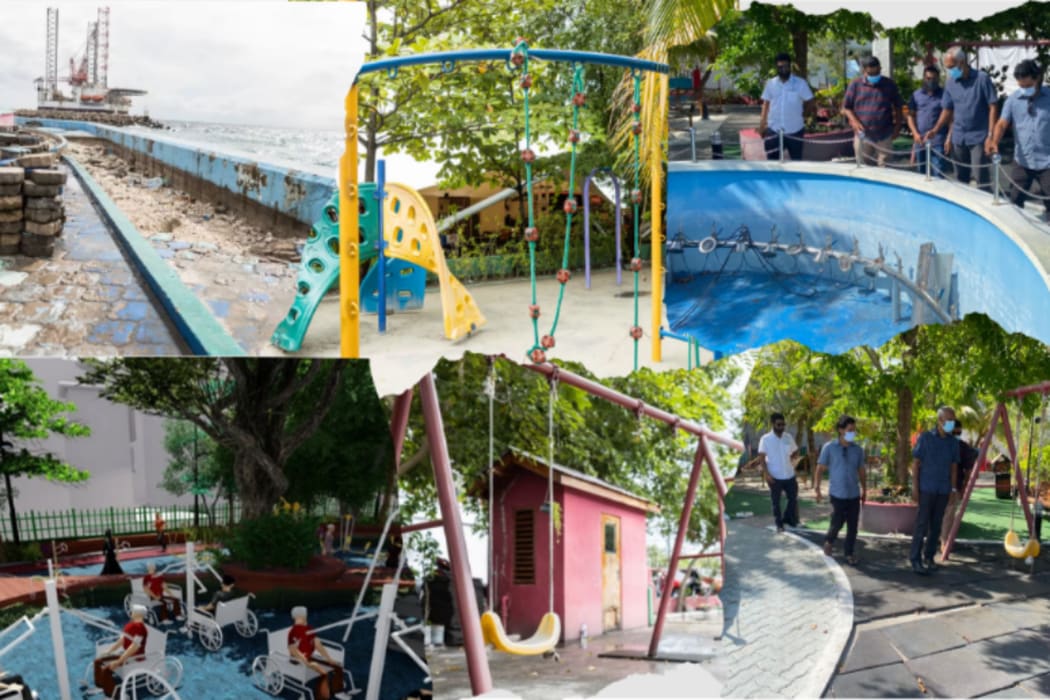 މާލޭ މޭޔަރަކަށް މުއިއްޒު ހުންނެވިއިރު މާލޭގެ ޕާކުތަކުގެ ހާލަތު އަދި ގަލޮޅު ޕާކް ތަރައްގީކުރަން ތައްޔާރުކުރި ކުރެހުމުގެ ފޮޓޯއެއް